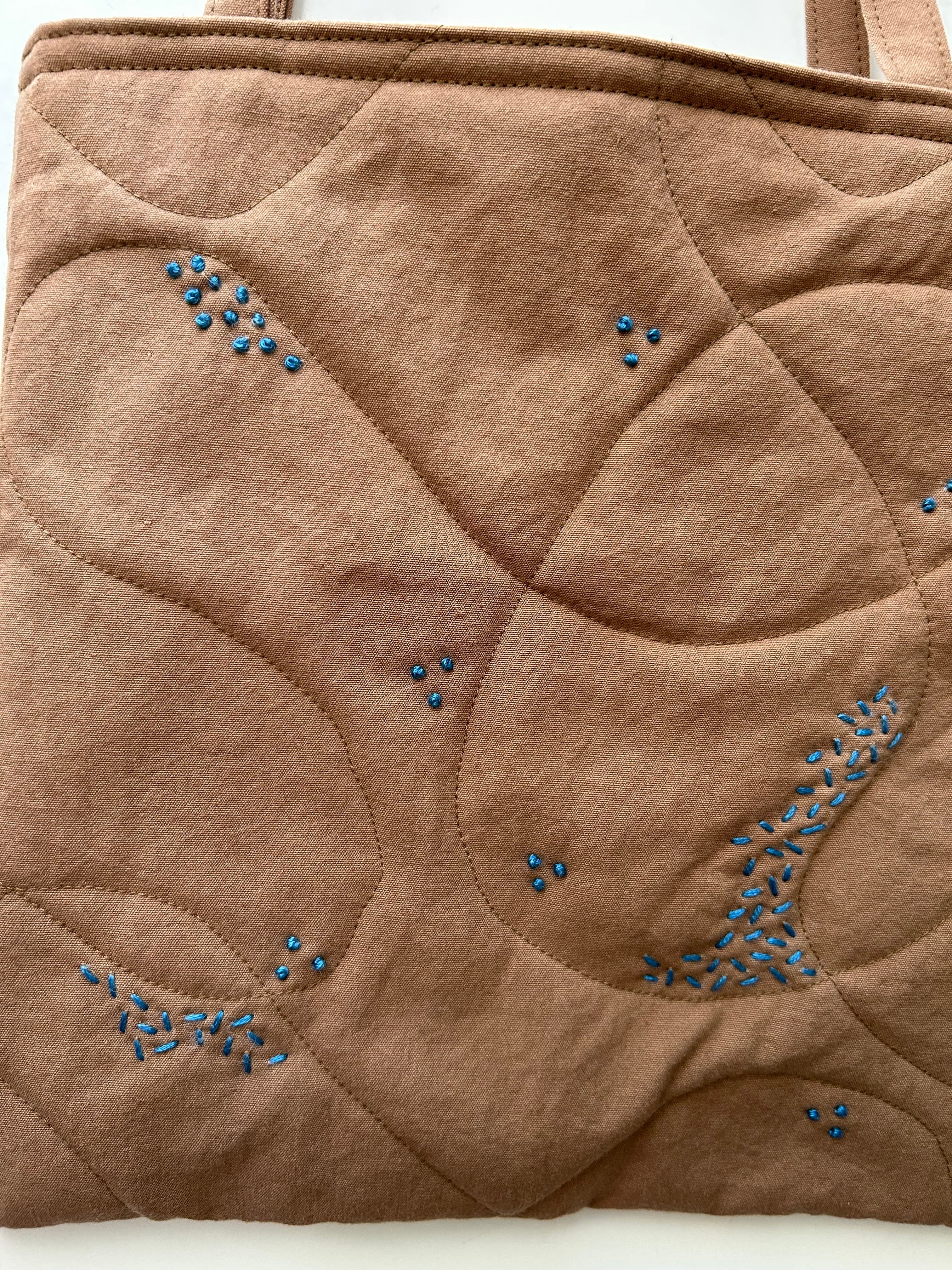 流れるようなステッチに小さな刺繍をしたバッグです◎