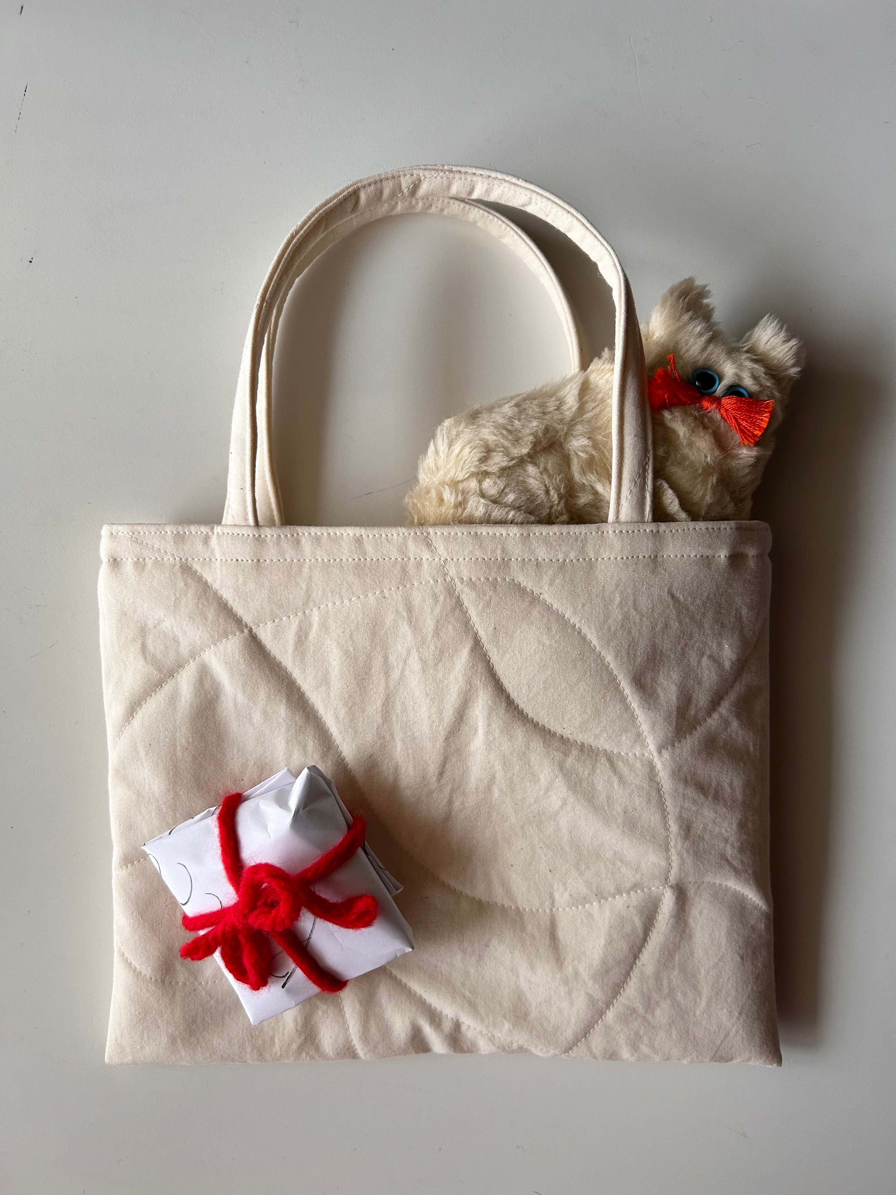 キルト芯が入ったちょっぴりふんわりした生地に流れる様なステッチを入れたflowbagです。